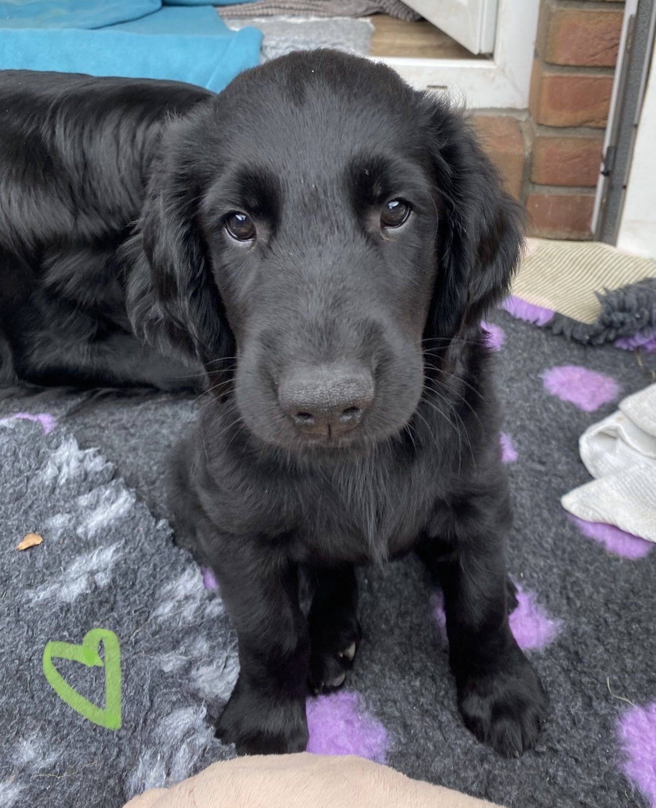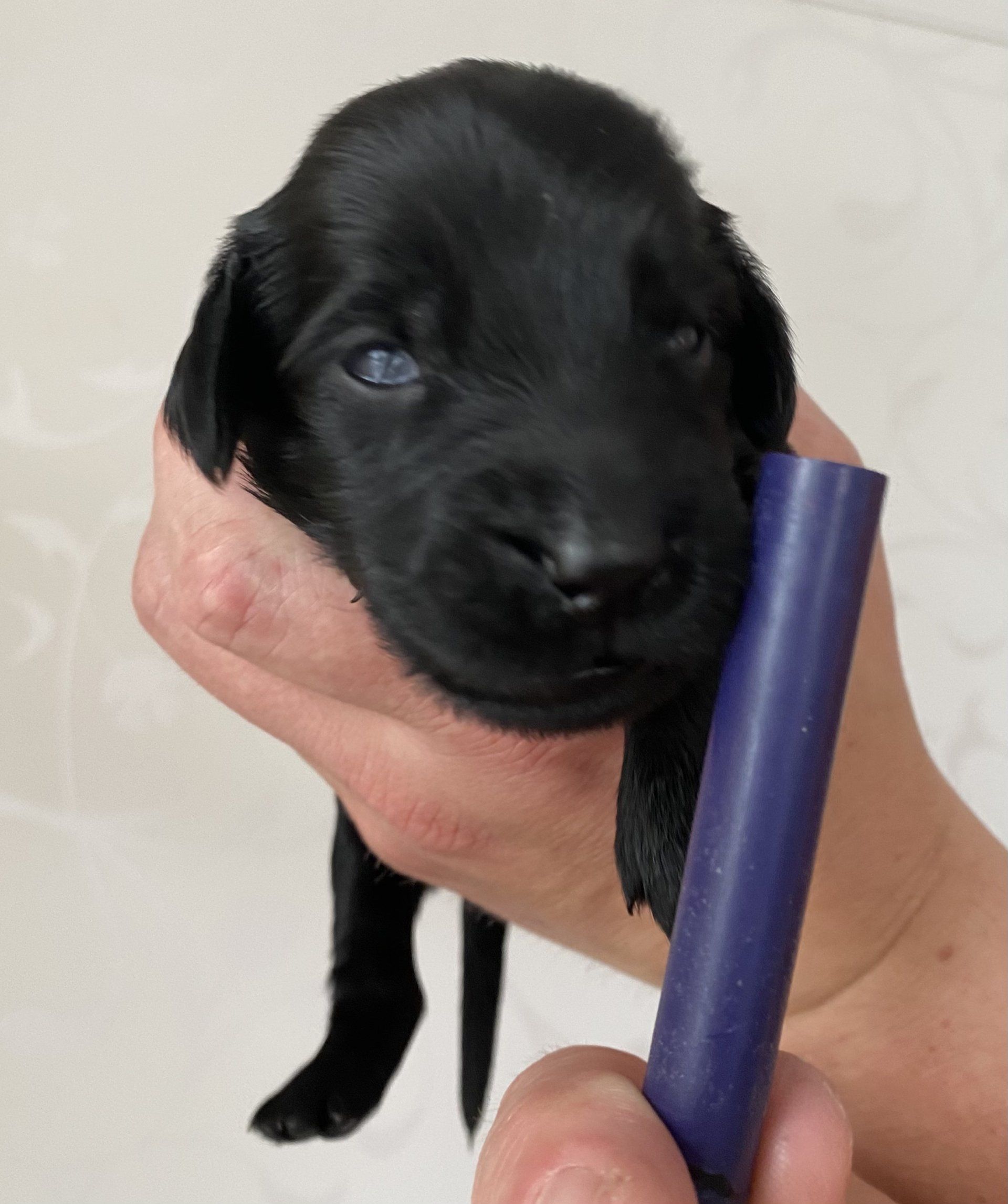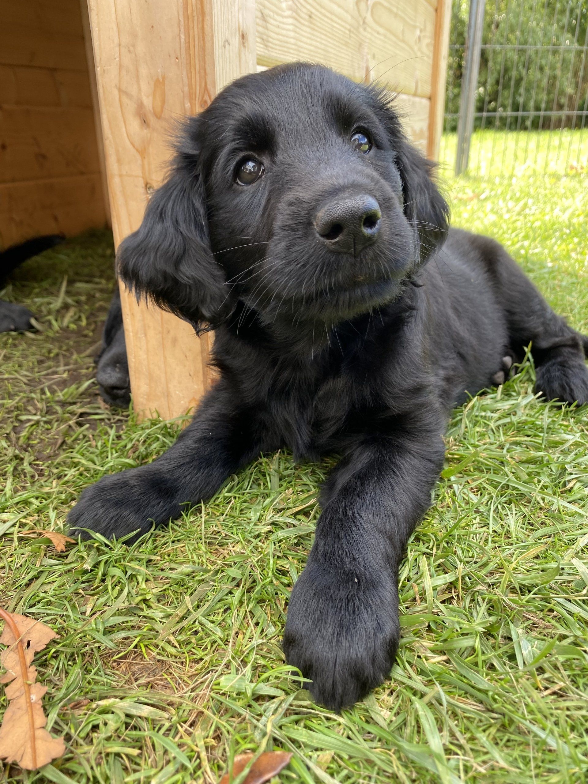 Der kleine Mann zieht zu Steffi und Thomas ins Hochsauerland. Die beiden sind hundeerfahren und sind somit perfekt vorbereitet auf das Abenteuer Flat! Der Rüde Blau ist seiner Schwester Fräulein Rot im Aussehen und Wesen sehr ähnlich. Auch hier freuen wir uns die Entwicklung weiterhin miterleben zu dürfen, auch wenn die neue Heimat nicht gerade um die Ecke ist. Thomas versorgt uns sicher täglich mit tollen Fotos von dem Kleinen. Wir wünschen euch viel Spaß bei dieser Aufgabe und bei der Ausbildung von einem Rüden.